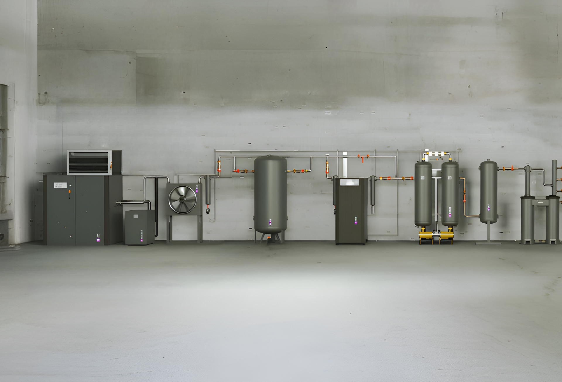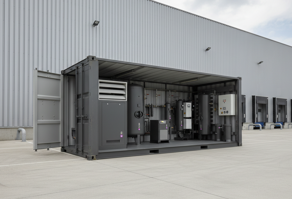 Gli elementi della stazione di produzione di azoto sono integrati in un'unità BOX compatta.